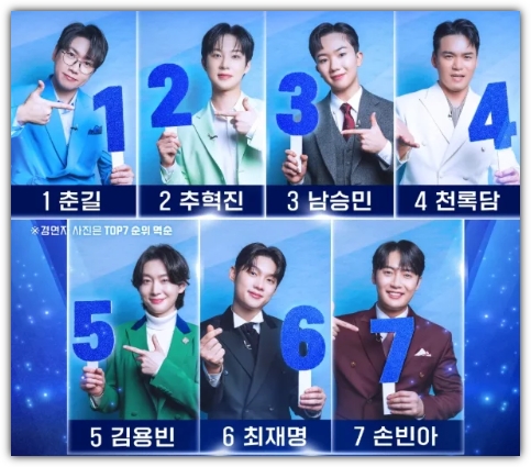 이번 시즌은 총 101팀이 참가하여 치열한 경쟁을 벌였으며, 그중 손빈아, 최재명, 김용빈, 천록담, 남승민, 추혁진, 춘길 등 7명이 TOP7에 이름을 올렸습니다. 이들은 각자의 독특한 매력과 실력으로 시청자들의 큰 사랑을 받아왔습니다.